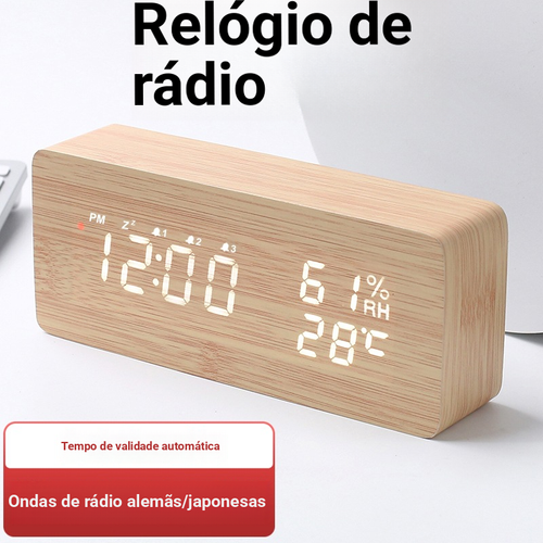 Relógio de despertador inteligente relógio de despertador de madeira LED termômetro umidômetro relógio digital eletrônico doméstico